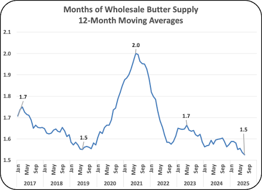 The chart levels currently show a very tight inventory level, not a glut of butter.