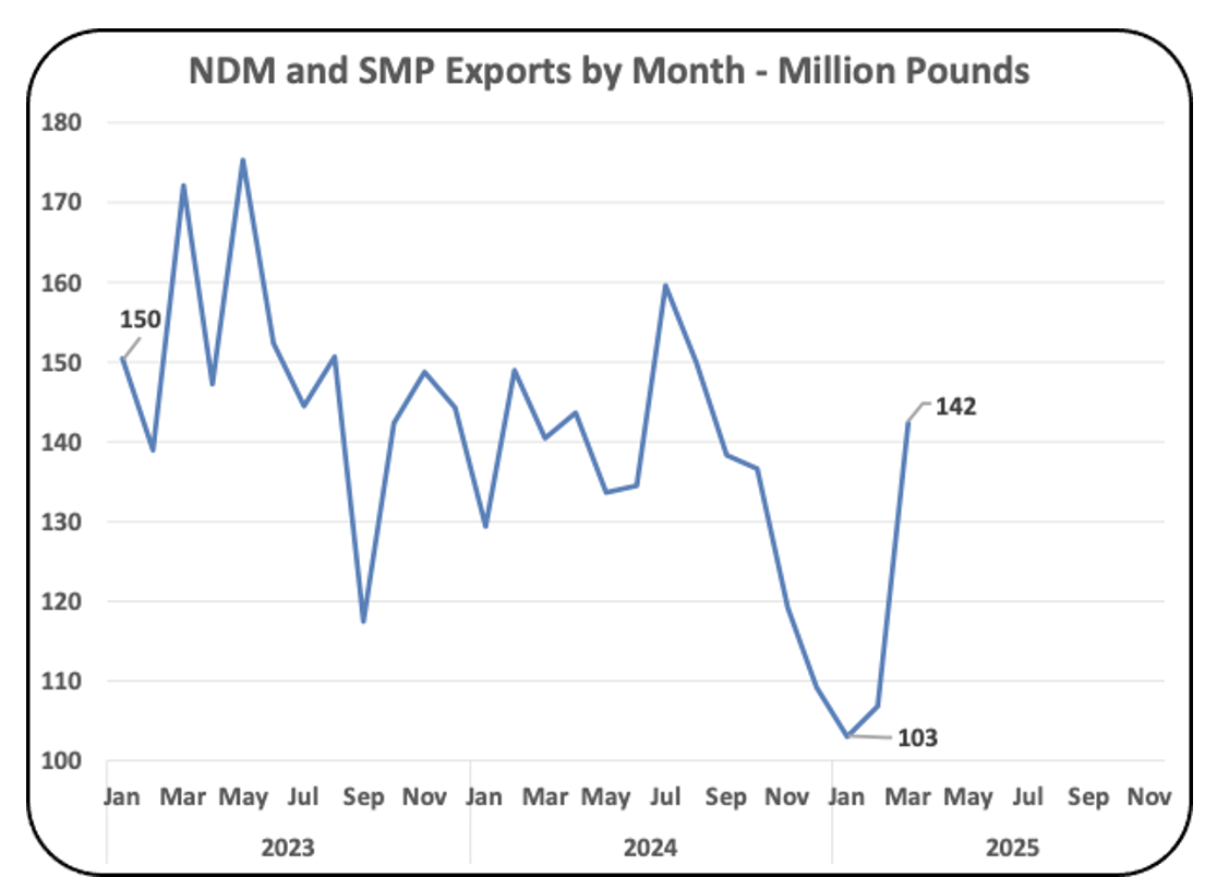 Chart II follows the monthly movements of NDM/SMP exports. They show a significant increase in exports in 2025.