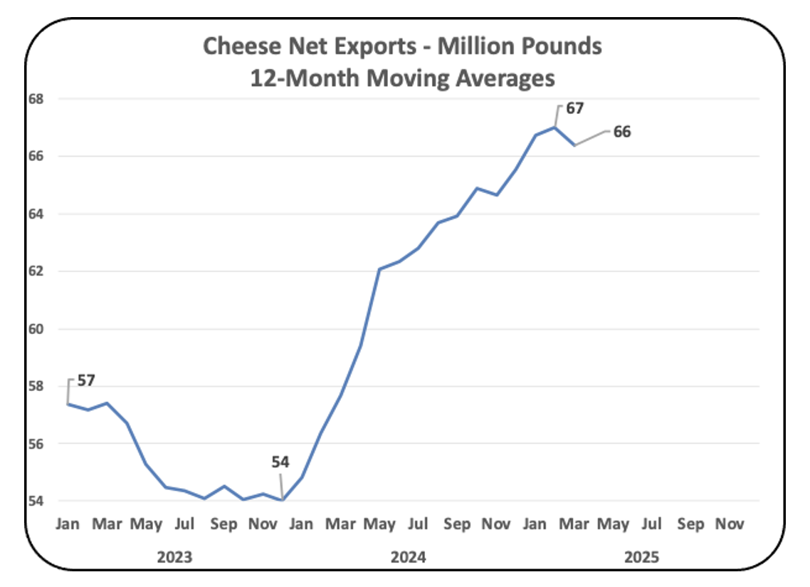 There are no signs of the tariff negotiations impacting dairy exports. This will be followed in future posts as new data becomes available. Hopefully, new trade agreements will be finalized in the coming months to eliminate the climate of uncertainty.