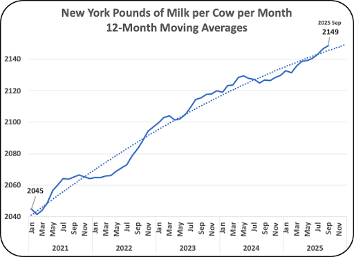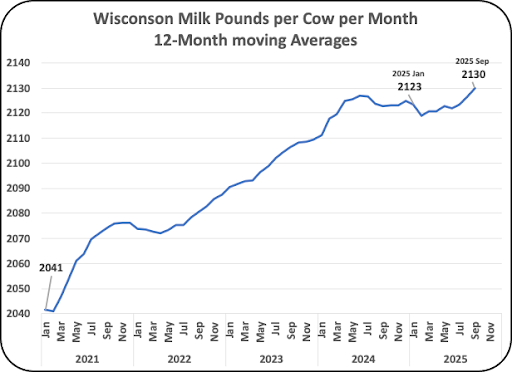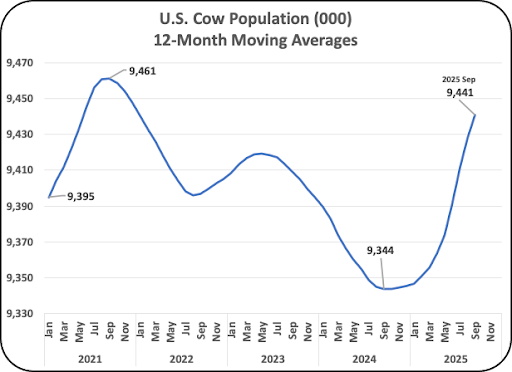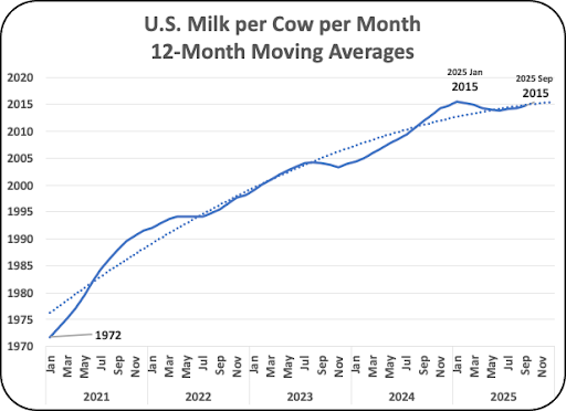 The U.S. cow population increased by 1% in 2025. It is not at record highs, although the volume of milk production is at record highs. That validates the impact of increased milk per cow. While the increase in cow count has contributed to the increase in milk production, as mentioned in the opening statement in this post, most of the increase in milk production has resulted from improved technology and management.
